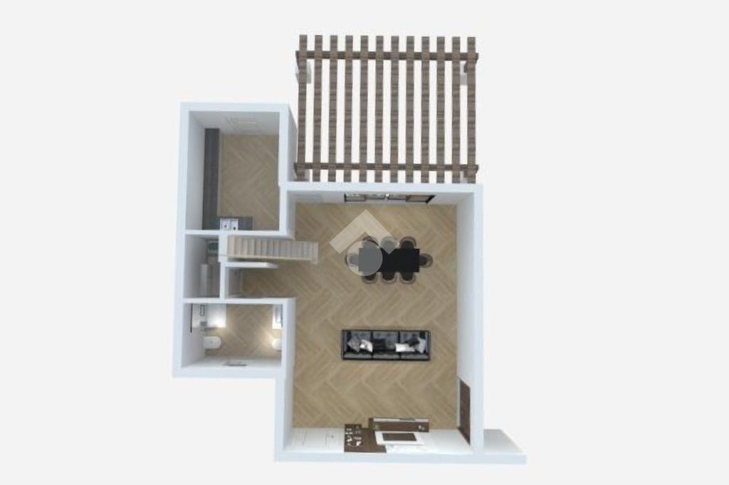 - PIANO TERRA con cucina-soggiorno annessi ad un porticato di 20 metri quadrati, ripostiglio e bagno;